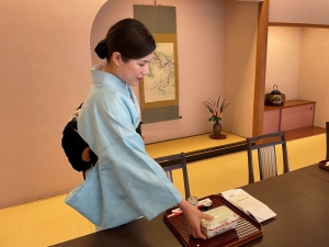 若い世代の方に料亭を使っていただくには、どのようなアプローチがいいのか。また、どのような結婚式であれば料亭ウエディングを検討いただけるのかを学生目線で考え、グループごとに発表していただきました。自身と世代が近い人の感覚を投影することで、リアルな視点で提案することができました。